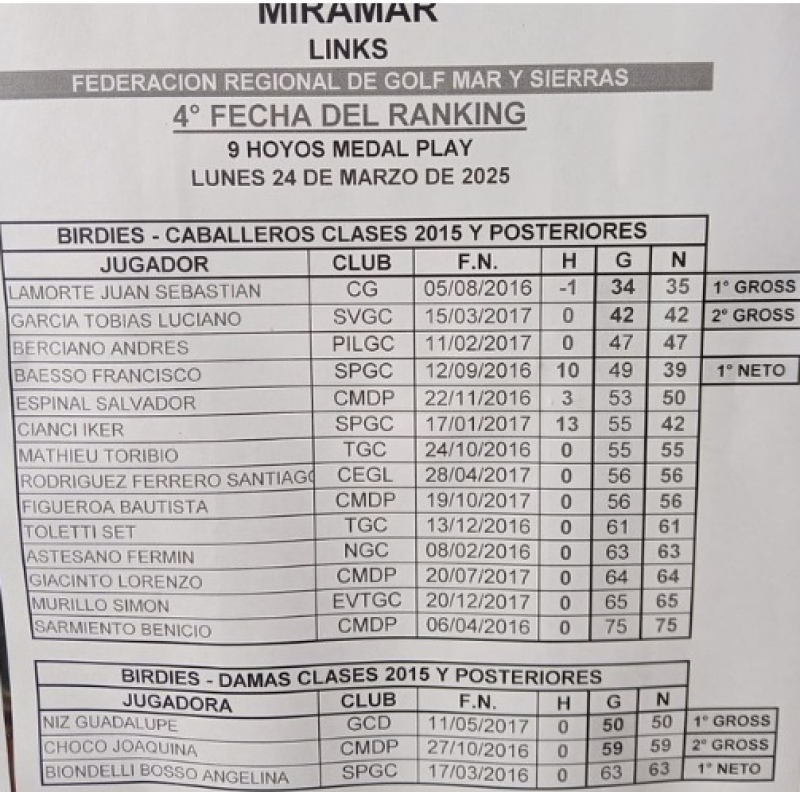 En la 4ta fecha del ranking de la Federación de Golf Mar y Sierras, Tobías García se adjudicó el segundo lugar en el torneo Medal Play a 9 hoyos.