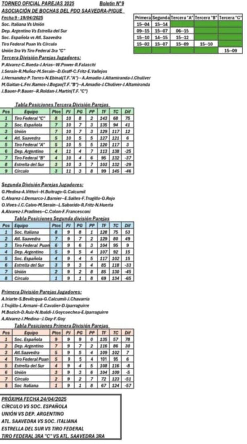 Finalizo el pasado sábado 11 de octubre el certamen por tercetos de primera división organizado por la Asociación de Bochas del partido de Saavedra - Pigüé.