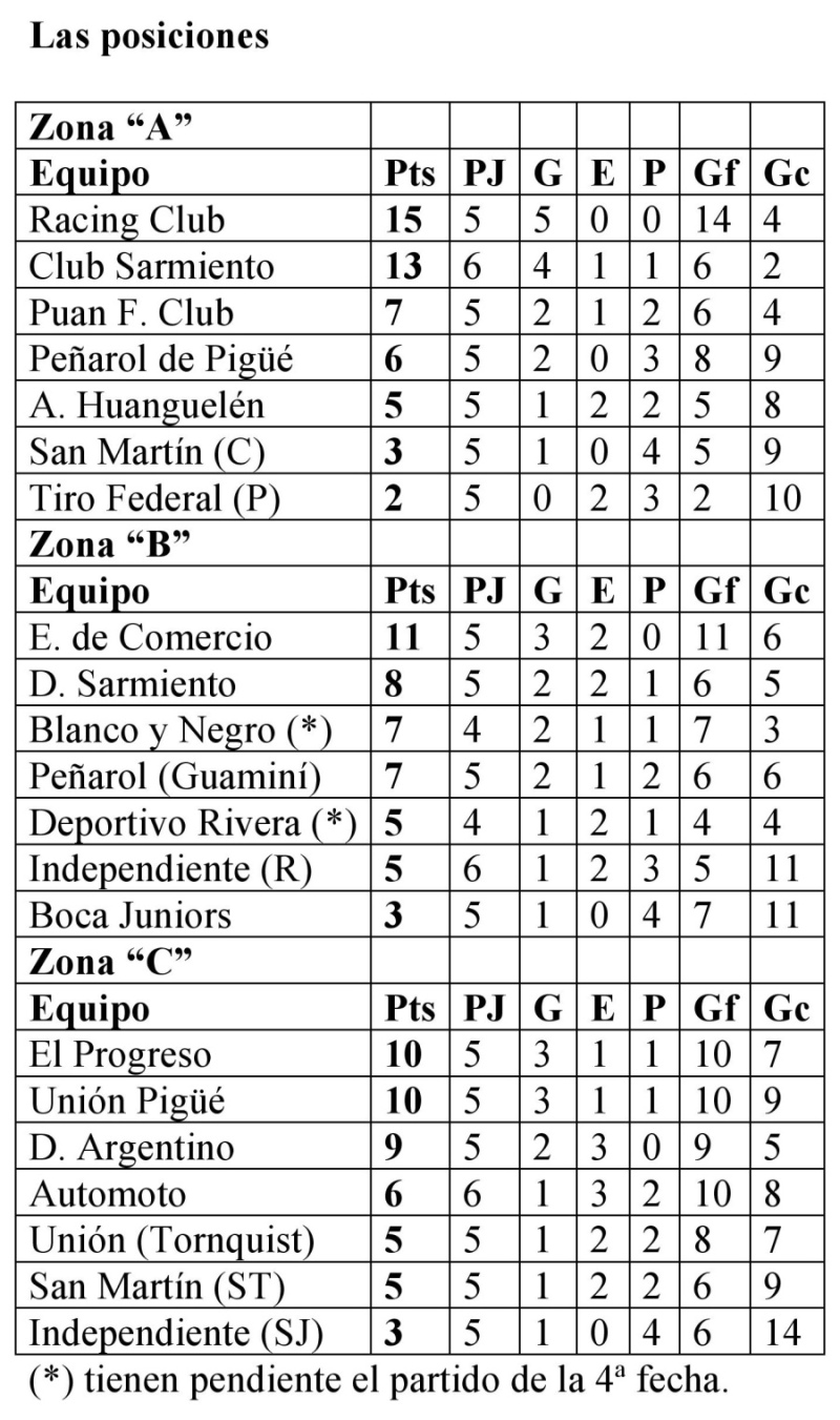 Mientras tanto, Unión de Tornquist, que venía de igualar 0 a 0 frente a Deportivo Argentino en Pigüé, no tuvo actividad oficial este fin de semana y aprovechó para recuperar energías de cara a lo que viene.