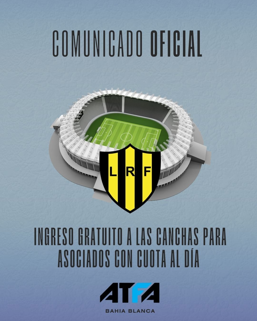 Con la firma de Fabián Tuya, que es el secretario general de la Seccional Bahía Blanca, la Asociación de Técnicos del Fútbol Argentino (ATFA) le informó a la LRF que, según el artículo 25 del Convenio Colectivo de Trabajo de la Asociación del Fútbol Argentino (AFA), las instituciones comprendidas permitirán el acceso gratuito de los directores técnicos afiliados a la ATFA, a sus estadios en ocasión de realizarse partidos de fútbol, previa presentación de carnet sindical con la cuota societaria al día.