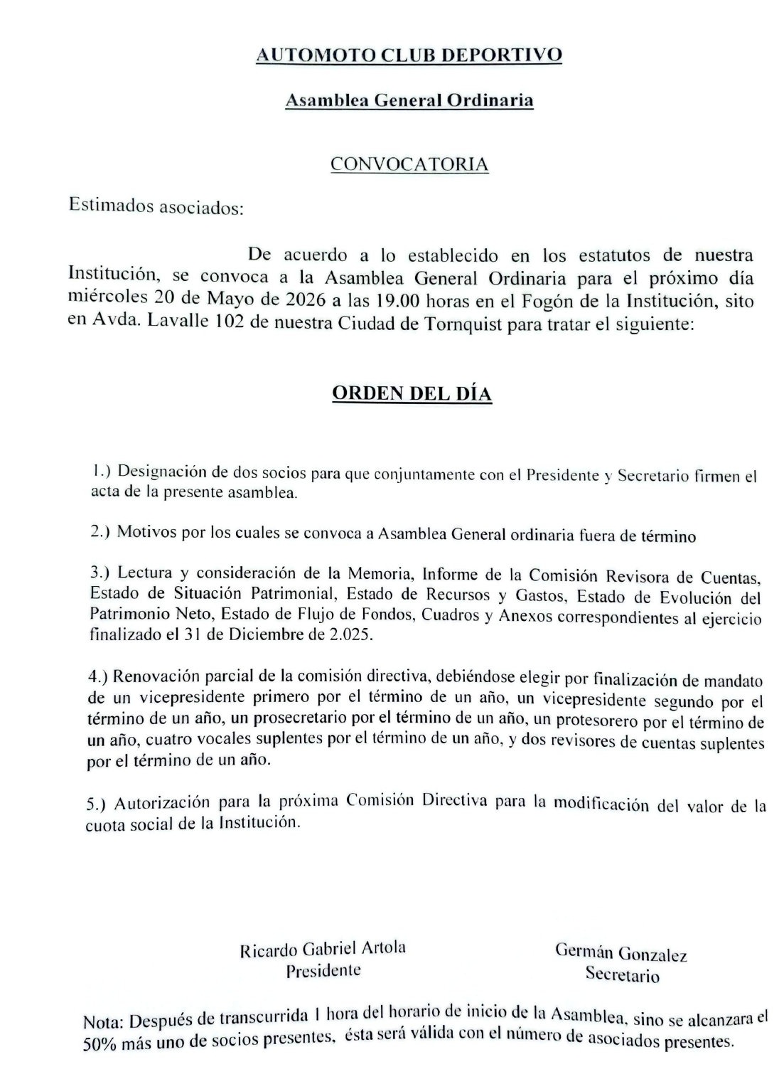 El Club Automoto llevará adelante este sábado 14 de marzo una “Pollada Azulgrana”, una iniciativa destinada a recaudar fondos para la institución.
