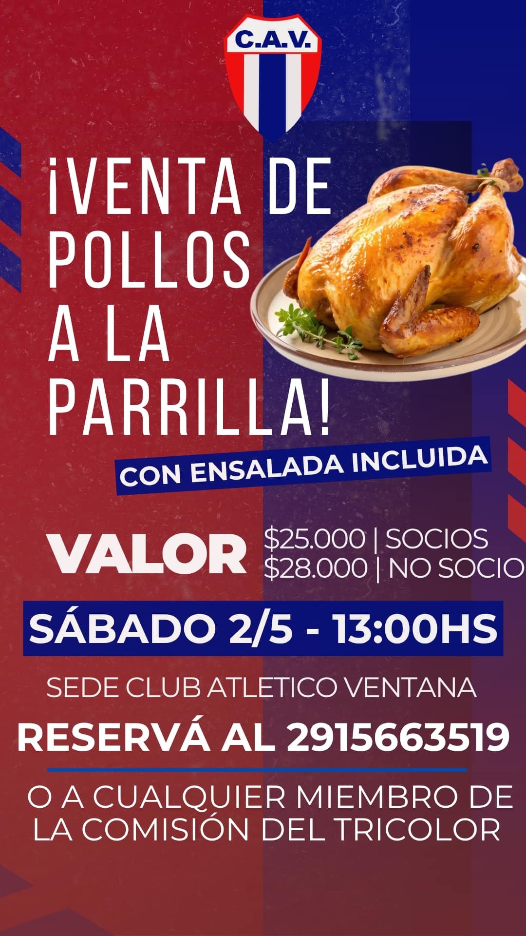 El Club Atlético Ventana anunció una nueva venta de pollos a la parrilla, una iniciativa clásica de la institución que busca reunir fondos para acompañar sus actividades deportivas y sociales.